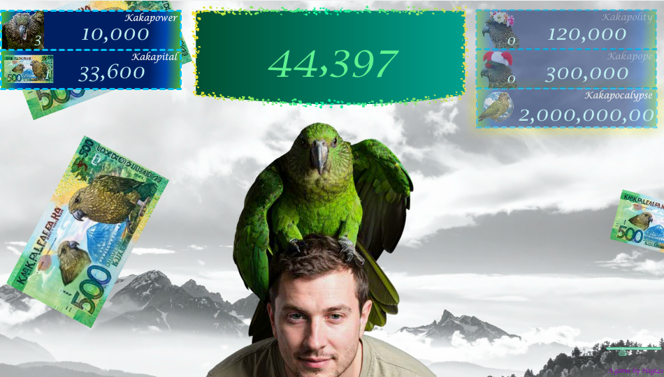 Click the bird in the center repeatedly to earn Kakapoints and purchase upgrades.